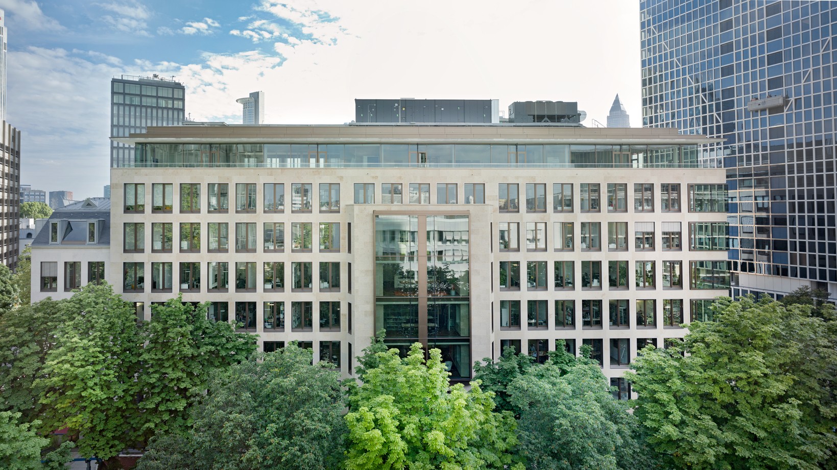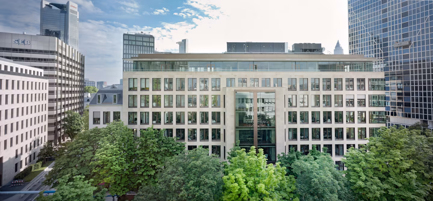 Das hochwertige achtgeschossige Bürogebäude steht im begehrten Frankfurter Westend, das architektonisch von klassischen Altbauten und modernen Büroimmobilien geprägt ist. Es wurde von Prof. Christoph Mäckler Architekten entworfen und 2011 fertiggestellt. Mit einer Gesamtmietfläche von rund 10.000 qm überzeugt der repräsentative Bau durch seine moderne Architektur, umlaufende Dachterrassen, eine über zwei Geschosse reichende Empfangshalle mit raumhoher Verglasung sowie attraktive Außenanlagen mit begrüntem Innenhof.